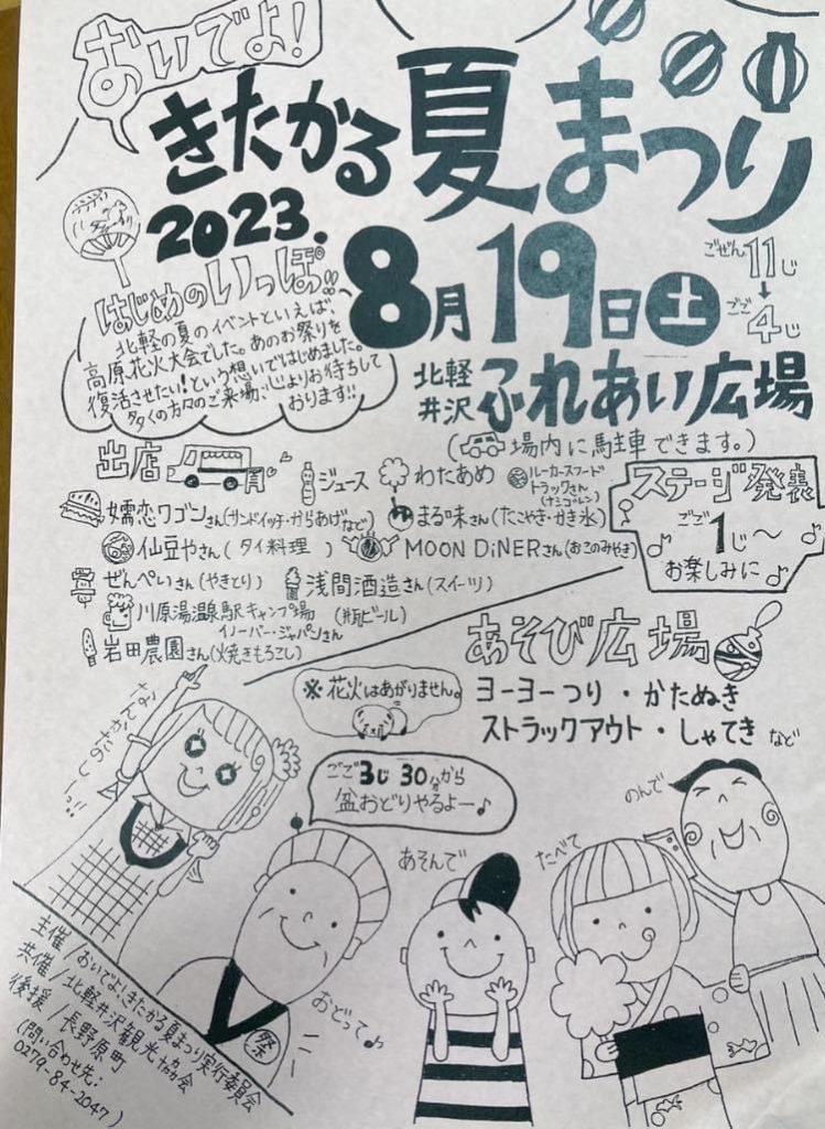 今週末の土曜日、北軽井沢ふれあい広場にて『おいでよ!きたかる夏まつり2023』が開催されます。